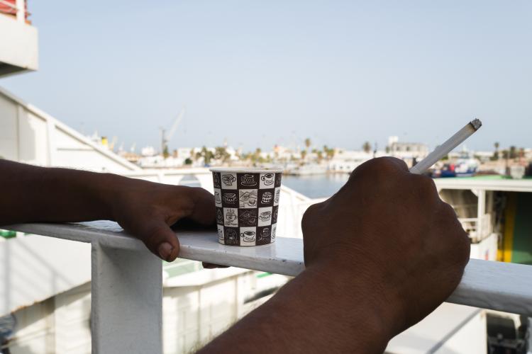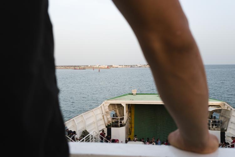 Le ferry est l’heure, j’embarque avec des touristes et des gens, des travailleurs qui font des aller- retour régulièrement, toujours sous la surveillance des forces de police, tout est sous contrôle. Il faut savoir que l'île de Kerkennah, prisée des passeurs, est plus proche des côtes italiennes de Lampedusa.