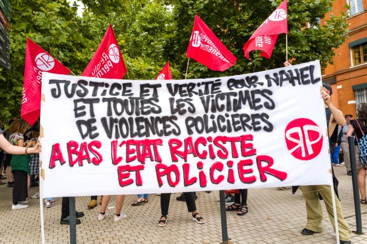 Rassemblement unitaire, Justice pour Nahel, contre le racisme systemique, les violences policieres, l Abolition de la loi 2017, Pas de justice d’exception dans le traitement judicaire des affaires en cours, Pour des politiques publiques d egalite. A l appel de Attac Toulouse, CGT 31, EELV 31, Fondation Copernic 31, FSU 31, Gauchecosocialiste 31, Generation.s 31, Jeunes Generation.s 31, Jeunesses anticapitalistes 31, LFI 31, LDH 31, Le poing leve Toulouse, Libre Pensée 31, Mouvement de la Paix 31, NPA 31, PCF 31, PCOF 31, POPI 31, PG 31, Révolution permanente, Solidaires 31, Solidarité Palestine Toulouse, Survie 31. France, Toulouse le 5 Juillet 2023.
