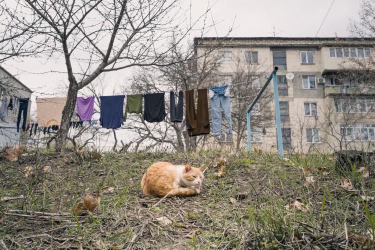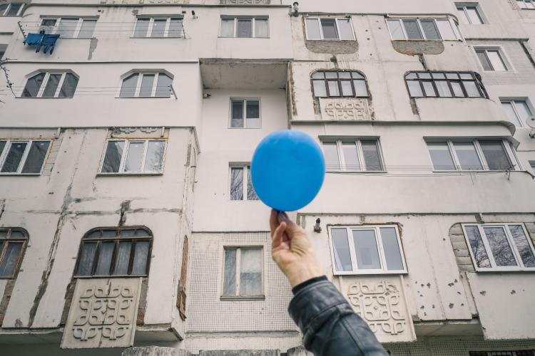 Entre photo documentaire et fiction poétique « Ma cité d’Orhei », série réalisée le 08 mars 2024 dans la ville d’Orhei en Moldavie. Une partie est la déambulation d’un ballon de baudruche bleu trouvé à l’entrée d’une cite populaire de la ville et l’autre s’attache plus à l’absence, à la rêverie.