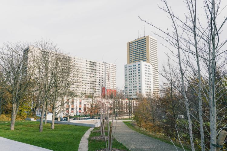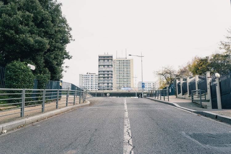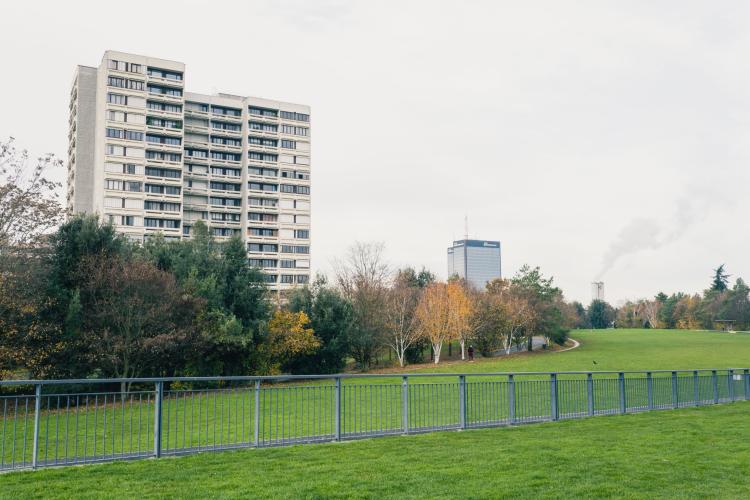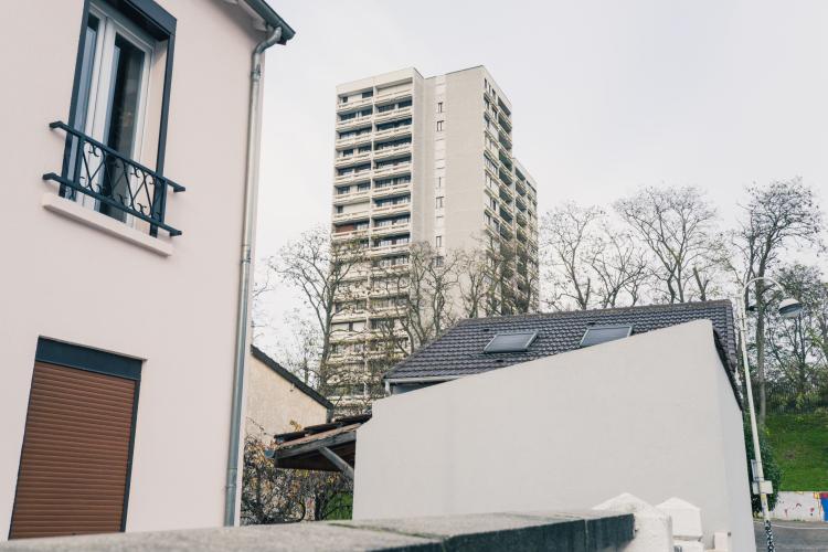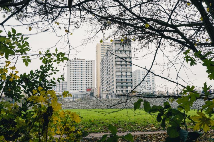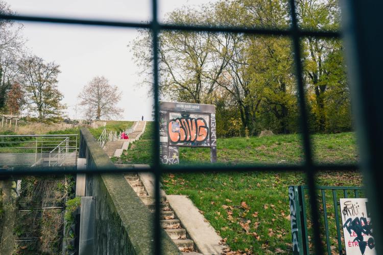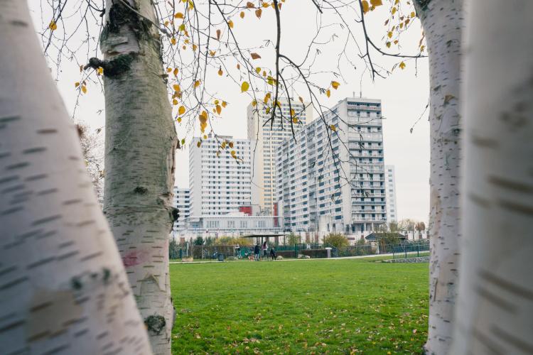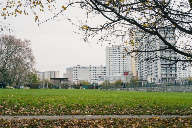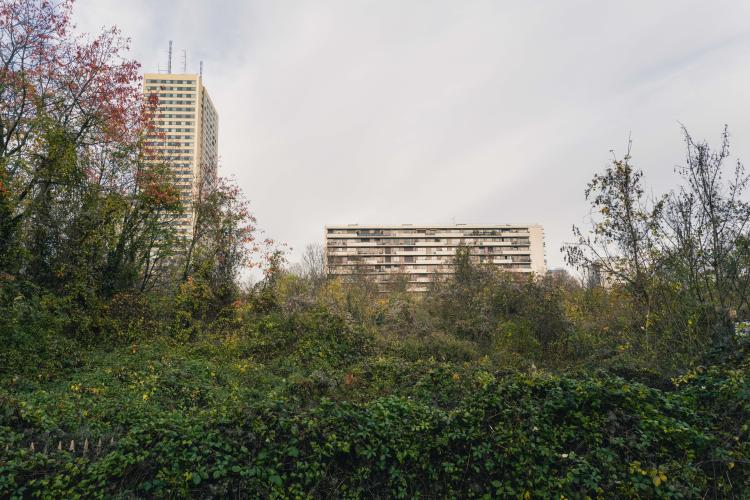 De Montreuil a Bagnolet, a travers les (favelas) a une des cites des Bagnolet, un parc les sépare, département de la Seine Saint Denis. Illustration de Paris, la ville, les monuments, les chantiers, les habitants, etc. France, Paris le 23 novembre 2023.