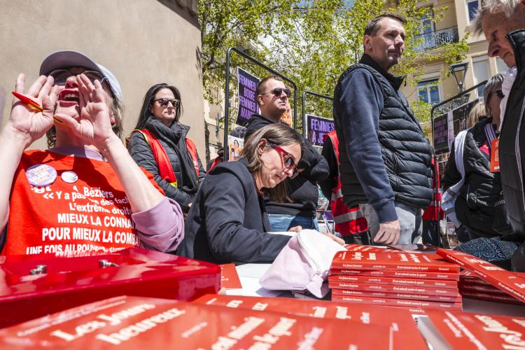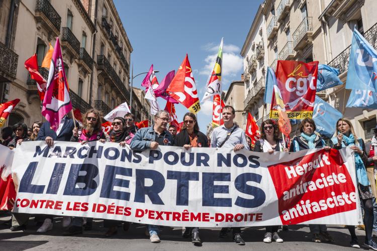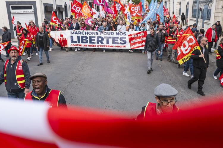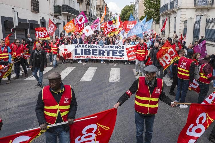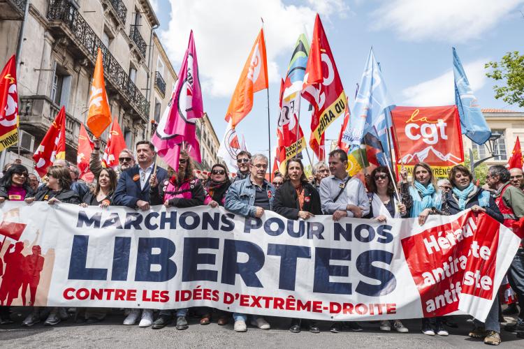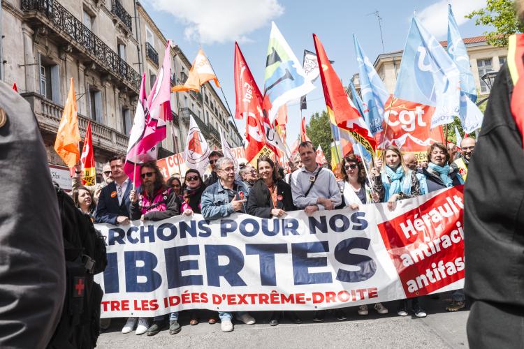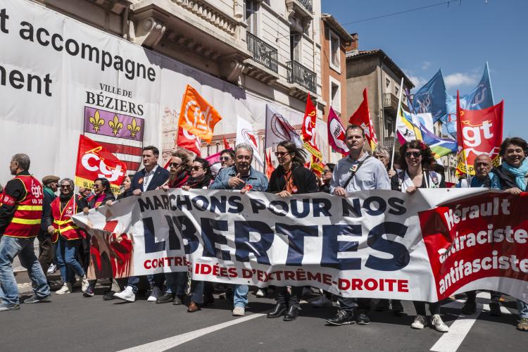 Société red mar 23 avr 2024 Marche pour nos libertés. HUCHOT-BOISSIER PATRICIA Accueil Photos Description Compléments Photos Description Marche unitaire pour nos libertes et contre les idees d extreme-droite, en presence de Sophie Binet, secrétaire nationale de la CGT, organisee a Beziers par des syndicats et associations. France, Beziers le 23 avril 2024. Compléments Béziers infos supplémentaire du photographe Mots clés Cgt Béziers libertes Sophie Binet Cgt